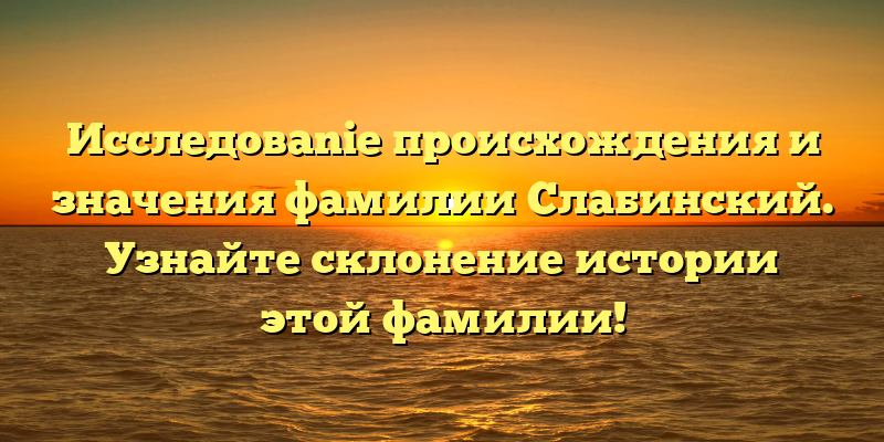 - От родословной до склонения: Исследование происхождения и значения фамилии Слабинский!
