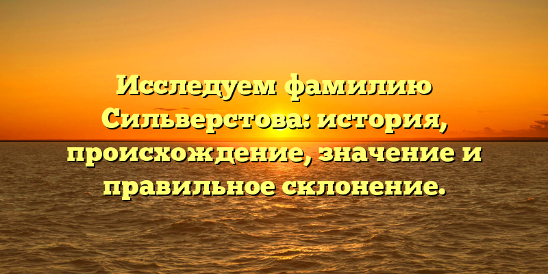 - Погружаемся в историю и значение фамилии Сильверстова: правильное происхождение и склонение.