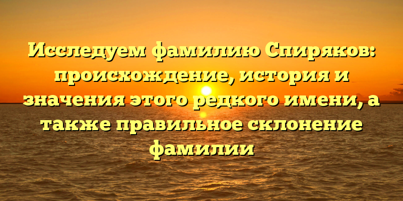 История и значения фамилии Спиряков: разбираем происхождение и правила склонения этого уникального имени