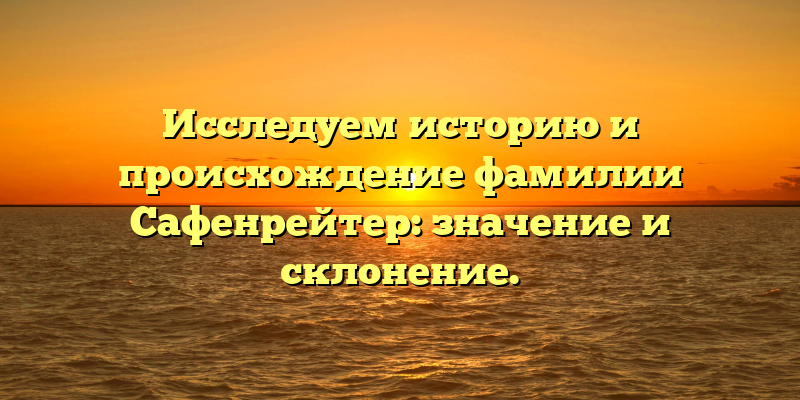 - Раскрываем тайны фамилии Сафенрейтер: история, происхождение и значение