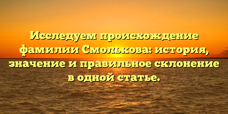 - Исследуем происхождение фамилии Смолькова: история, значение и правильное склонение в одной статье