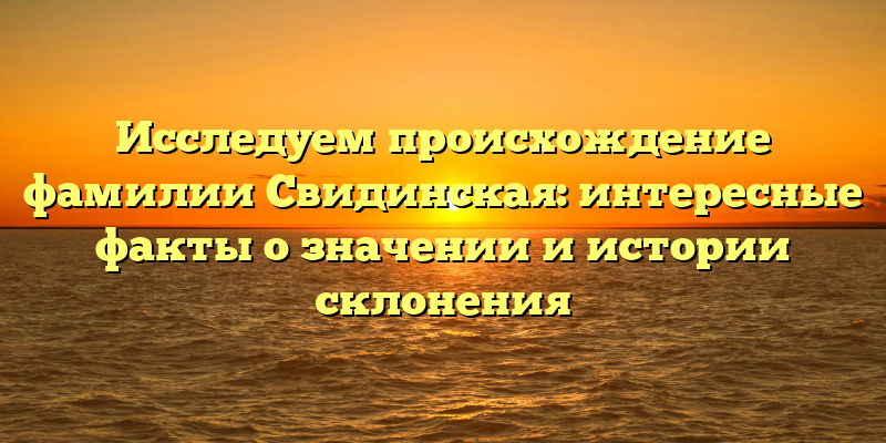 Узнайте все о происхождении фамилии Свидинская: история, значения и склонение в одной статье