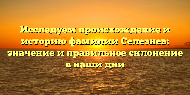 Каждая фамилия имеет свою историю и происхождение. Одним из наиболее распространенных и интересных является фамилия Селезнев. В этой статье мы рассмотрим происхождение и историю этой фамилии, а также узнаем, как правильно склонять ее в современном русском языке.