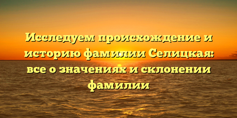 - Исследование происхождения и истории фамилии Селицкая: открытие тайн о значениях и склонении