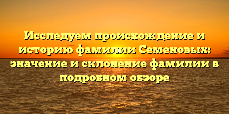 По следам Семеновых: расследуем происхождение, историю и склонение этой фамилии в подробном обзоре