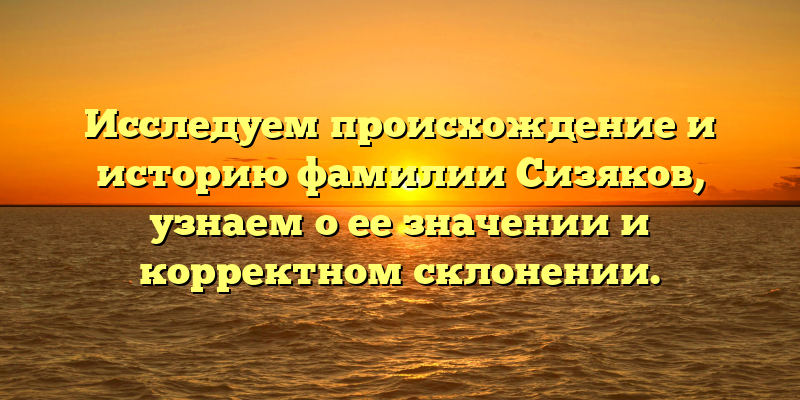 В этой статье мы рассмотрим происхождение фамилии Сизяков, изучим исторические данные, данную терминологию, а также узнаем, как склонять эту фамилию в различных падежах и числах.