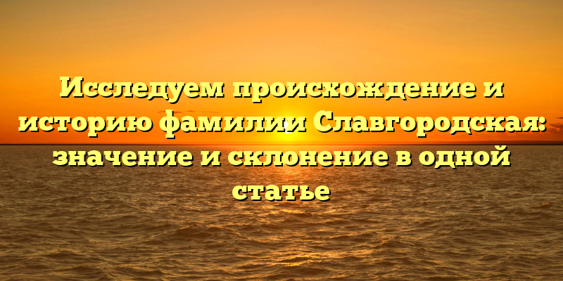 - Полное расследование происхождения и истории фамилии Славгородская: значение и склонение