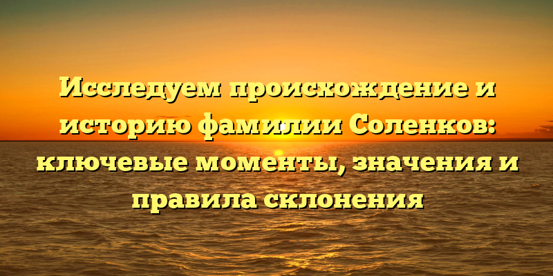 Корни и история фамилии Соленков: всё о происхождении, значениях и правилах склонения в исследовании