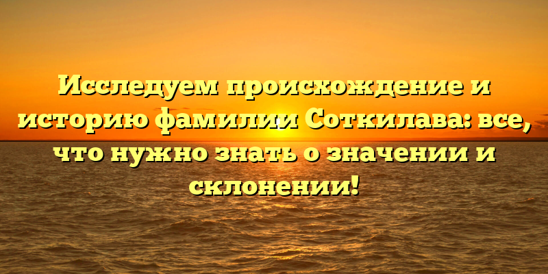 В этой статье мы попытаемся раскрыть тайну фамилии Соткилава, исследуя ее происхождение и более детально рассмотрим ее историю. Будем рассказывать о том, как данная фамилия появилась, какие корни она имеет и что означает. Мы также рассмотрим, как правильно склонять данную фамилию и проинформируем о том, какие значение она несет в современном мире.