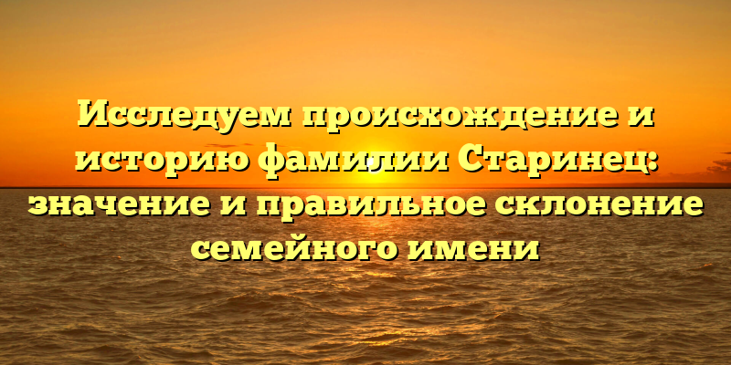 - Узнайте больше о происхождении, истории и правильном склонении фамилии Старинец: важная информация для всех владельцев этой фамилии