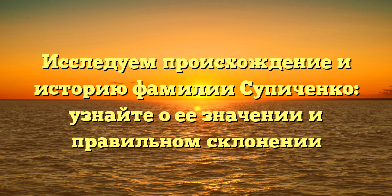 - Фамилия Супиченко: история происхождения и правила склонения — все, что вам нужно знать
