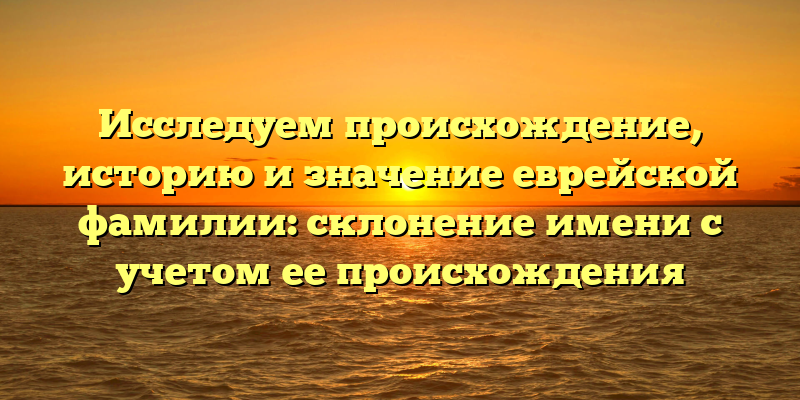 - Еврейские фамилии: исследование происхождения и истории, и приемы склонения имени в соответствии с его происхождением