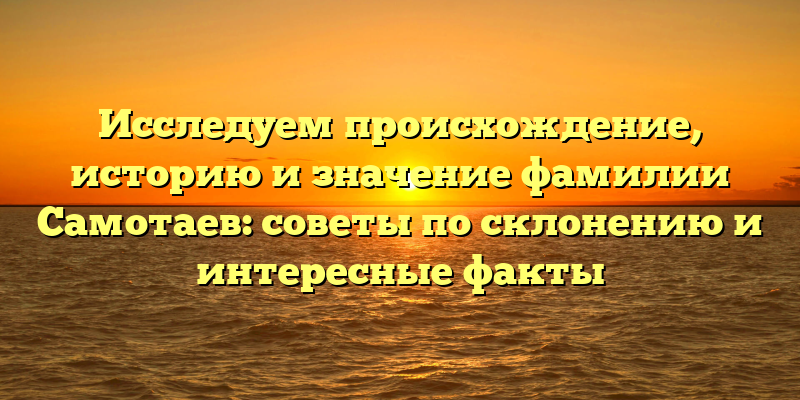 - Фамилия Самотаев: происхождение, история и значение + полезные советы по ее склонению и увлекательные факты