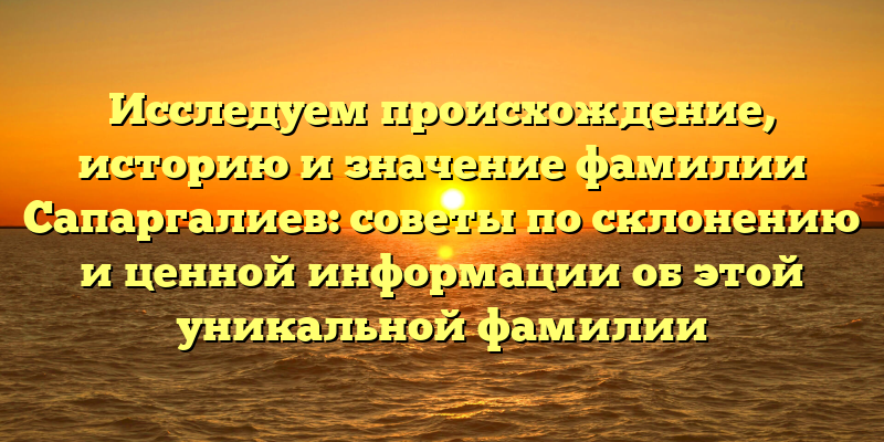 - Исследуйте происхождение, историю и значение фамилии Сапаргалиев: полезные советы по склонению и знакомство с уникальной информацией