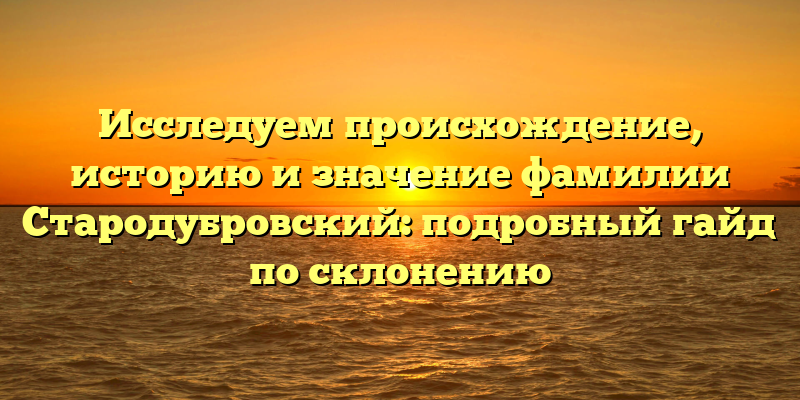 - Фамильная история Стародубровских: подробный гайд по склонению и значению