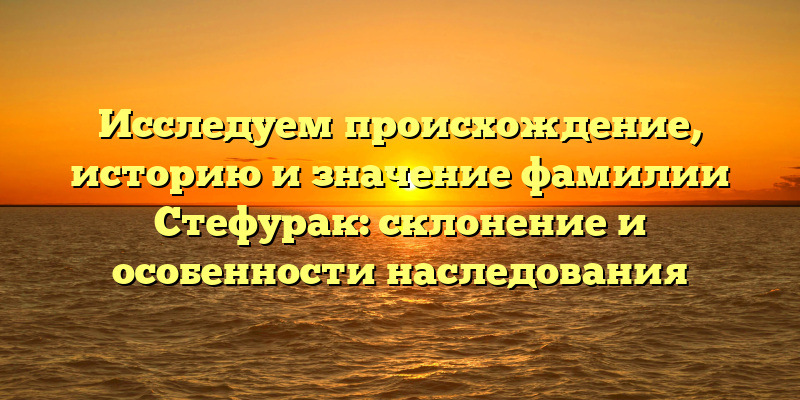 Фамилия Стефурак: происхождение, история и наследование в одной статье