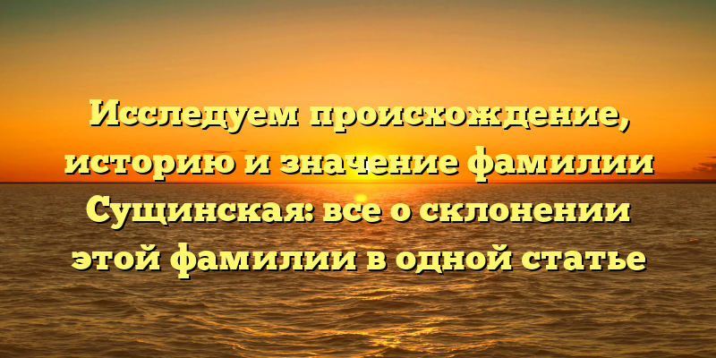 В этой статье мы попытаемся разобраться в этих вопросах. Мы поговорим о том, какой языковой корень лежит в основе фамилии Сущинская, откуда она происходит и как менялось ее значение со временем. Мы также рассмотрим вопрос, как правильно склонять эту фамилию в русском языке.