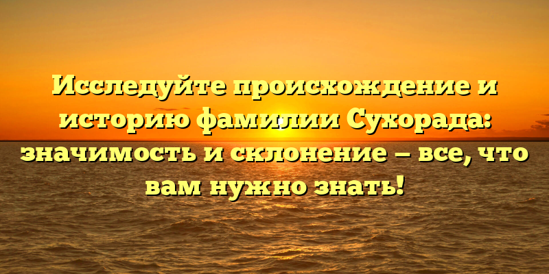 Все мы хотим знать о том, откуда мы пришли, о нашем происхождении и истории. И если вы являетесь членом семьи Сухорада, то знание своей фамилии — это не только интересно, но и значимо. В этой статье мы расскажем о происхождении фамилии Сухорада, ее истории и склонении.