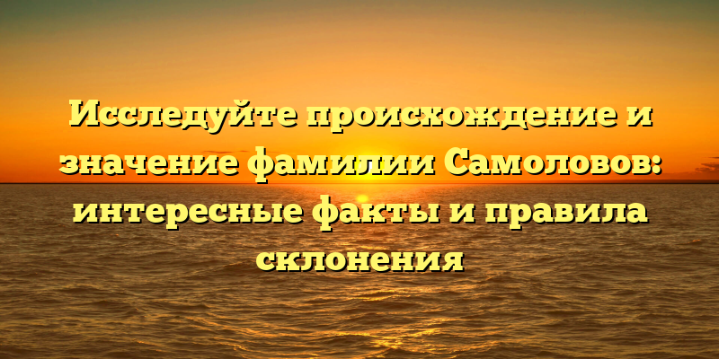 - Открывайте тайны фамилии Самоловов: происхождение, значения и секреты правильного склонения.