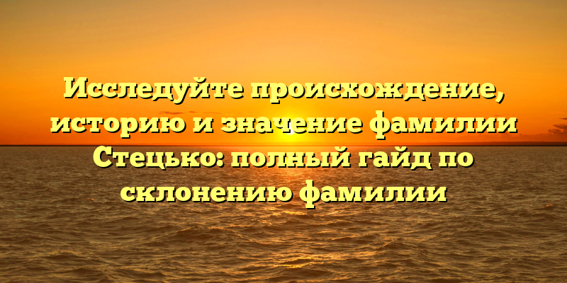 Исследование истории и значения фамилии Стецько: переводим склонение на русский язык в полном гайде.