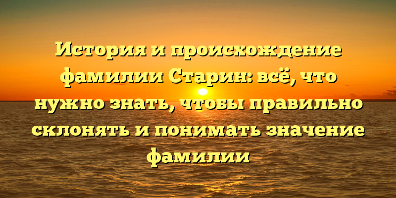 - Погружение в историю фамилии Старин: склонение и значение, которые каждый должен знать