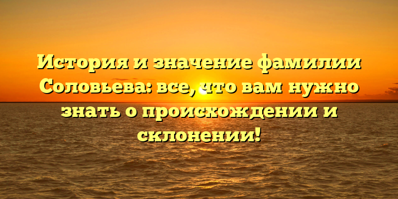 - Откройте тайны своей фамилии: История исконных корней фамилии Соловьева и как правильно склонять ее!