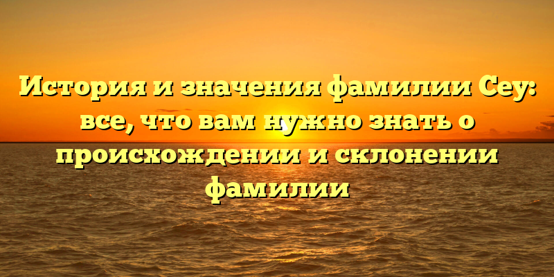 - Сеу: полный гид по происхождению и склонению фамилии, от исторических корней до современного значения