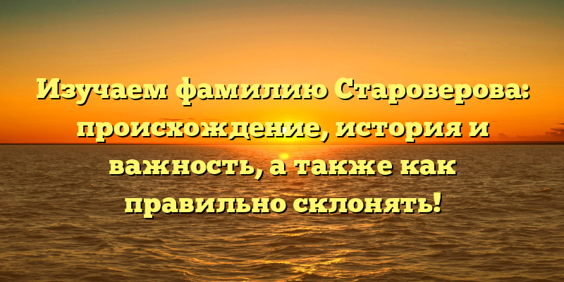 В этой статье мы рассмотрим происхождение и историю фамилии Староверова, а также дадим рекомендации по правильному склонению этого имени.
