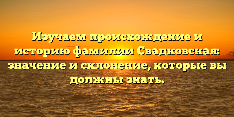 Если вы хотите узнать больше о своей фамилии Свадковская, эта статья точно для вас!
