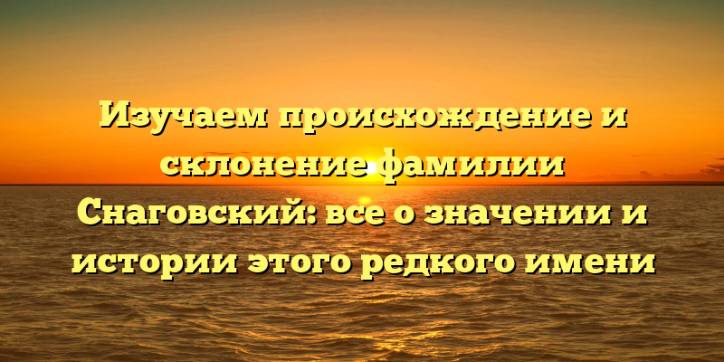 - Раскрываем тайны происхождения и склонения фамилии Снаговский: узнайте все об истории и значении этого уникального имени