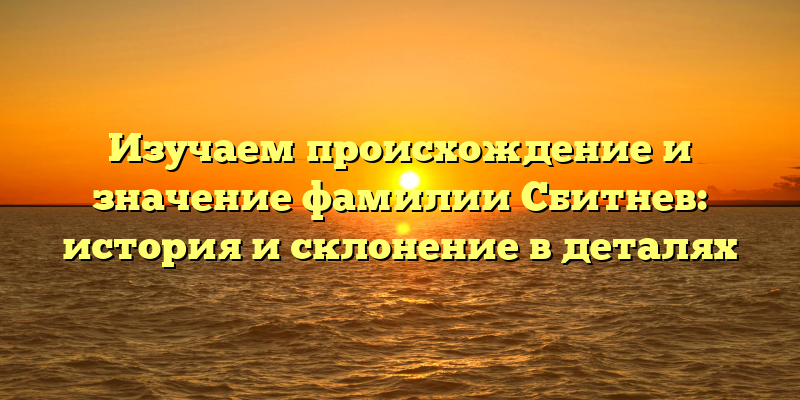 В этой статье мы рассмотрим историю и происхождение фамилии Сбитнев, а также ее склонение и особенности в русском языке. Мы поговорим о том, как эта фамилия появилась в России, какие источники нам известны и какие теории существуют. Мы также узнаем, как правильно склонять фамилию Сбитнев в деталях и какие нюансы существуют в этом процессе.
