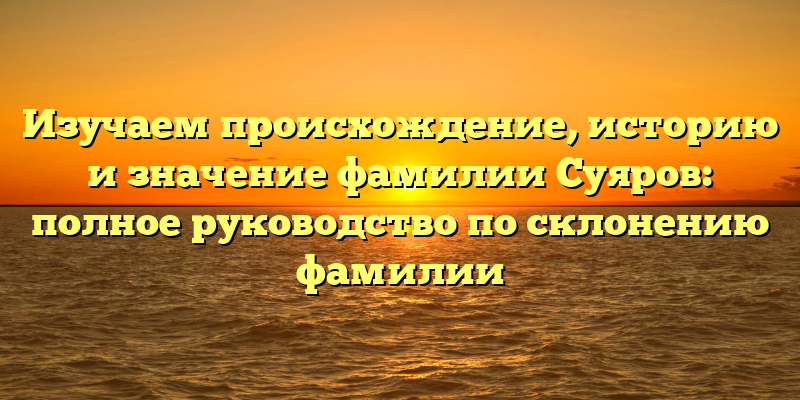 В данной статье мы рассмотрим не только историю фамилии Суяров, но и ее значение в наше время. Более того, мы предоставим полное руководство по склонению фамилии на русском языке, которое пригодится каждому, кто столкнется с этой трудной задачей.