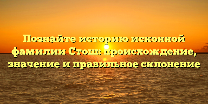 - Раскроем тайны истории исконной фамилии Стош: происхождение, значение и склонение — всё, что вы хотели знать!