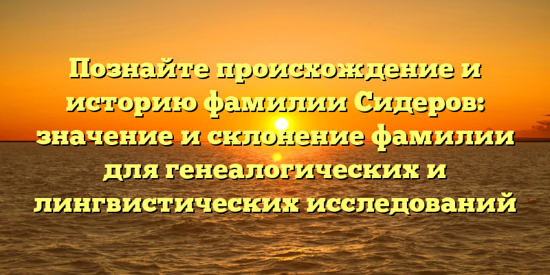 - Раскрываем тайны фамилии Сидеров: первоначальное значение и история для генеалогических и лингвистических исследований