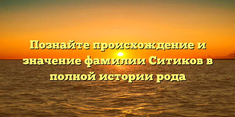 - Род Ситиков: от происхождения до смысла фамилии — глубокое погружение в историю