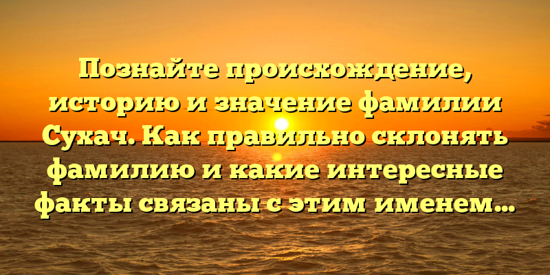 Интересные факты о фамилии Сухач: происхождение, история и правила склонения.
