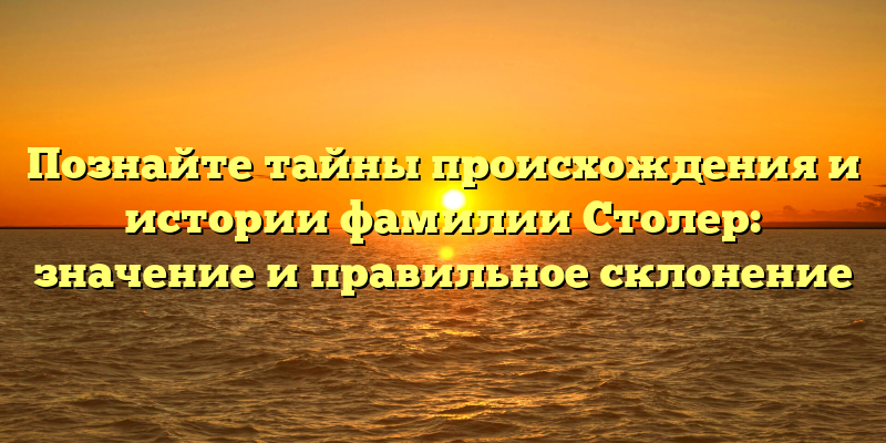 Происхождение и история фамилии Столер: узнайте все тайны и правильное склонение