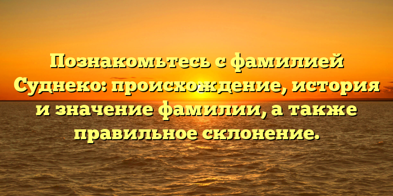 Узнайте всё о фамилии Суднеко: происхождение, история и правильное склонение в одной статье!