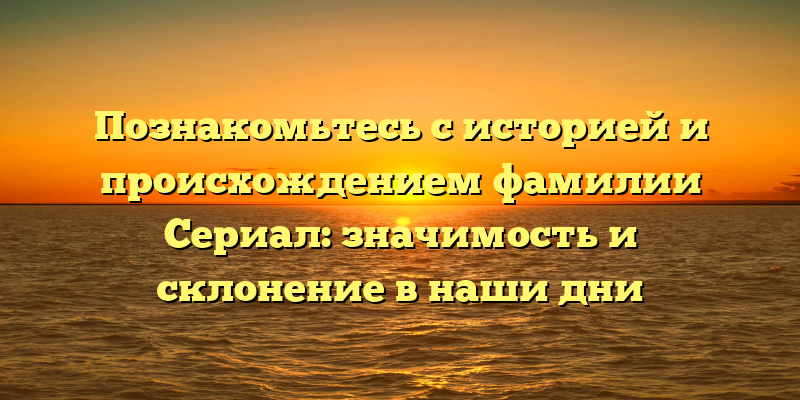 Что же означает фамилия Сериал, и как она появилась? Давайте разберемся!