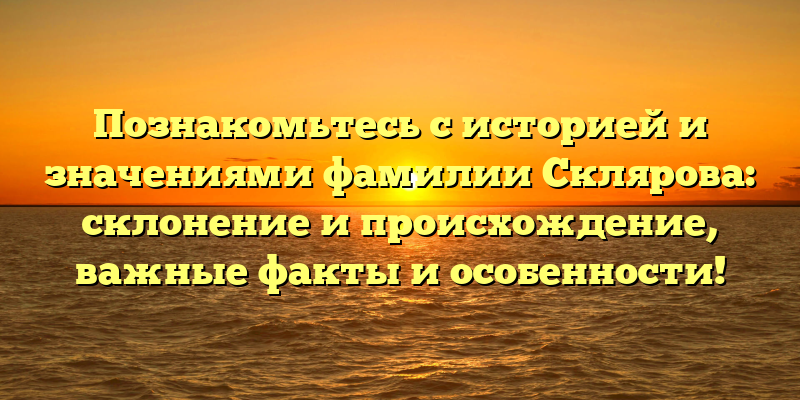 - Исследуем историю и значения фамилии Склярова: происхождение, склонение, интересные факты и ключевые особенности!