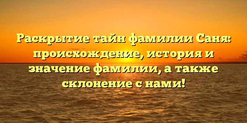 - Открываем тайны фамилии Саня: все об истории, происхождении и значении, а также правильном склонении с нами!