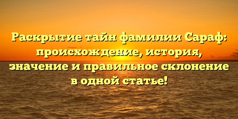 - Секреты фамилии Сараф: происхождение, история, значение и правильное склонение — все в одной статье!