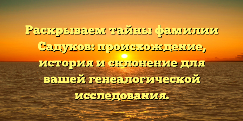 - Открываем историю фамилии Садуков: происхождение, тайны и склонение — полезная информация для генеалогических исследований