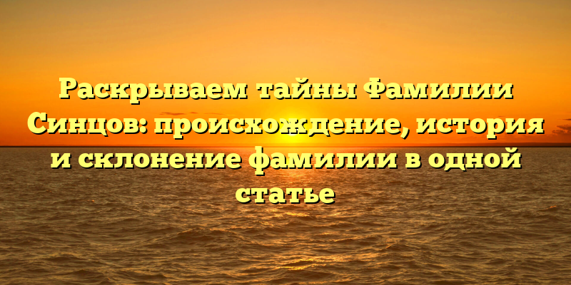 - Исследование Фамилии Синцов: Узнайте всё о происхождении, истории и склонении в одной статье!