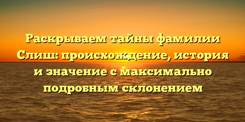 Фамилия Слиш: происхождение, история и значение с полным склонением – узнайте все секреты!