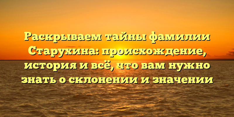 Полная история фамилии Старухина: склонение, значение и происхождение в одной статье