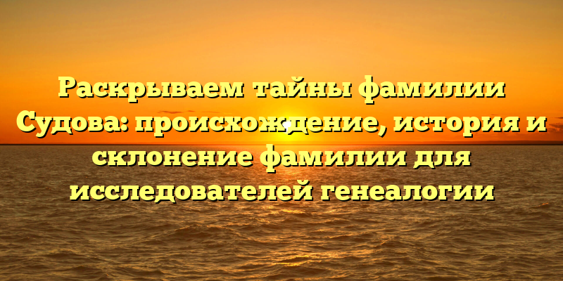Итак, в данной статье мы попытаемся рассказать о происхождении, истории и склонении фамилии Судова на основе имеющихся данных и гипотез. Если вам интересно узнать больше о своих корнях и происхождении вашей фамилии, то эта статья для вас.