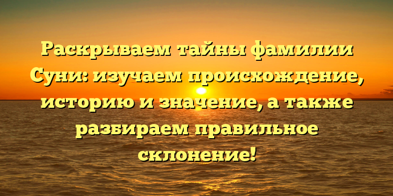 - Секреты фамилии Суни: происхождение, история и значение, а также правильное склонение! — SEO-заголовок для статьи.