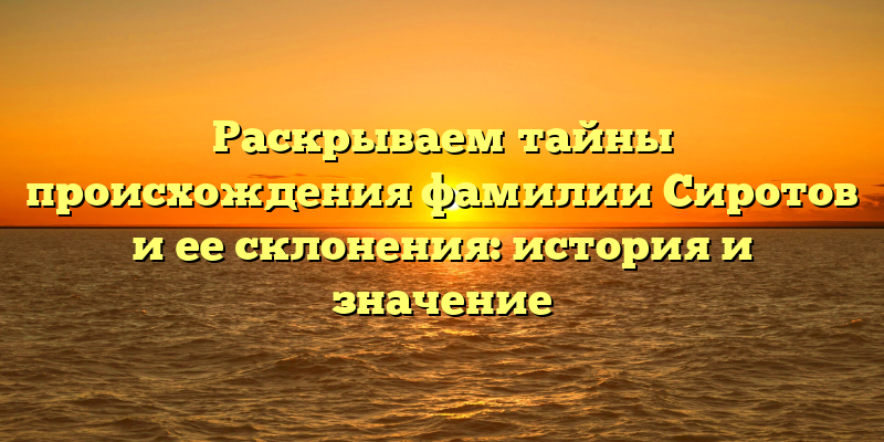 История фамилии Сиротов: раскрытие тайн происхождения и смысл склонения