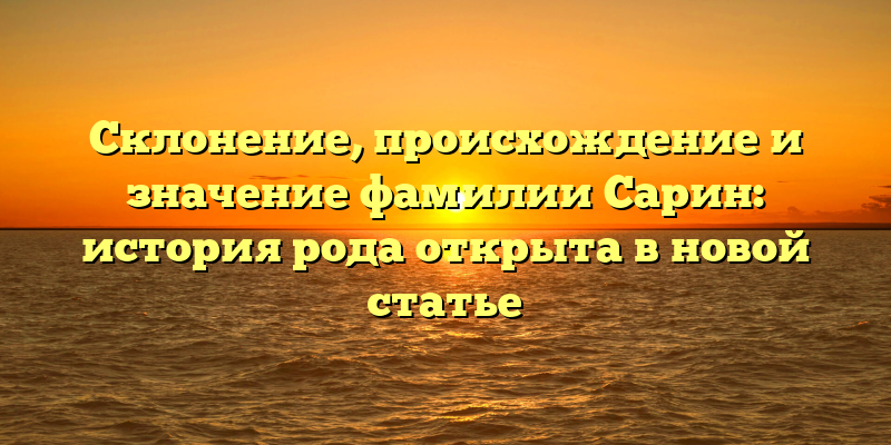 Откройте историю своей фамилии: узнайте о происхождении и значении фамилии Сарин в новой статье